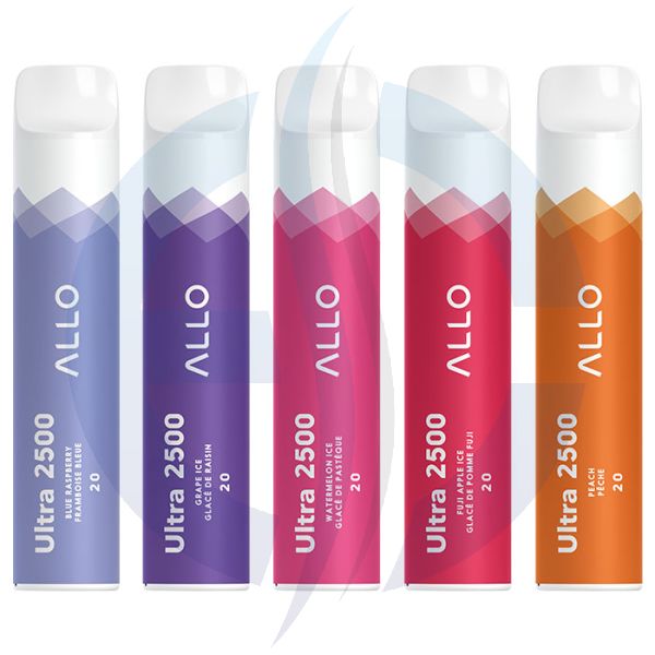 Allo Ultra 2500 Disposable , an all-in-one vape designed to be disposed once empty. With a sleek, portable design and longerlasting 1500maH battery. The Allo Ultra has 10ml of e-liquid with up to 2500 puffs.